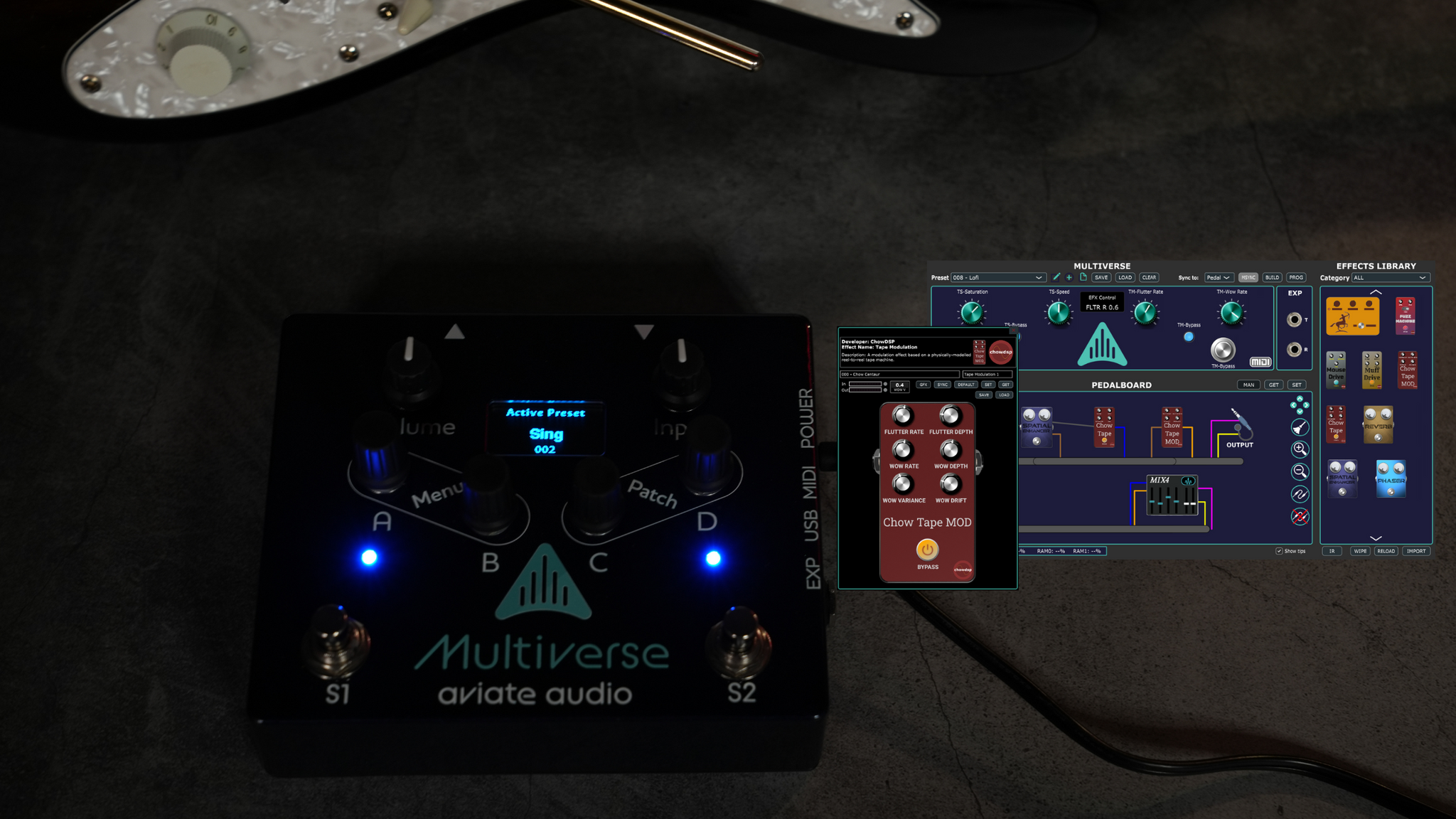 Multiverse is a customizable digital effects pedal. Powered by an expansive collection of downloadable audio effects that are made by a variety of developers & brands. Created to satisfy every musician’s never-ending tone quest.