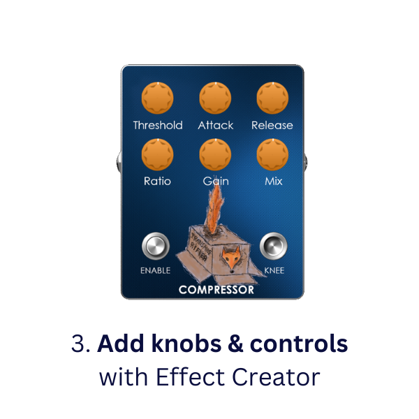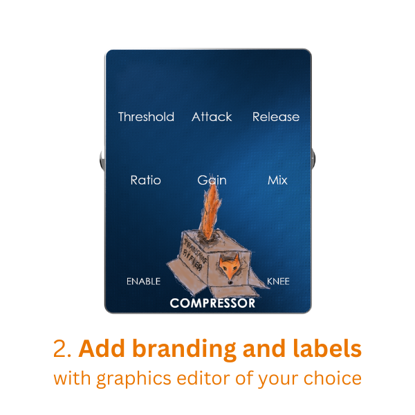 Effects uses a Base Image, Pedal Icon, and Controls (knobs, switches, sliders, etc.). Download a graphic on this page, add your controls, labels, and create an effect using the free Effect Creator tool. Visit our Downloads Page to get free Multiverse Effect Creator software.